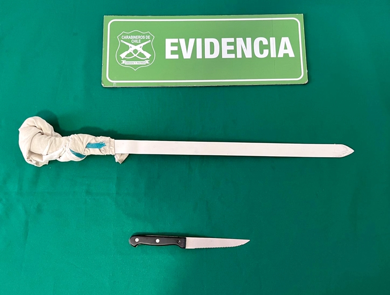 Sin embargo, esta no era la única arma que portaba, ya que al revisar un bolso que tenía consigo fue hallado un cuchillo de mesa que también le fue requisado.