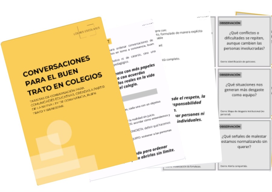 En este contexto, Líderes Escolares desarrolló un set de tarjetas de conversación diseñado para ser utilizado por equipos escolares en espacios de trabajo interno, especialmente en el comienzo del año lectivo, cuando se definen criterios, se instalan prácticas y se construyen acuerdos que sostendrán la convivencia durante todo el período académico. A diferencia de capacitaciones tradicionales o nuevos protocolos, la herramienta busca generar conversaciones guiadas que permitan alinear miradas, fortalecer la toma de decisiones y cuidar a los equipos.